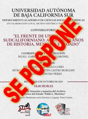 La Universidad Autónoma de Baja California Sur en coordinación con el Archivo Histórico del Estado de Baja California Sur "Pablo L. Martínez", les invitamos al conversatorio: