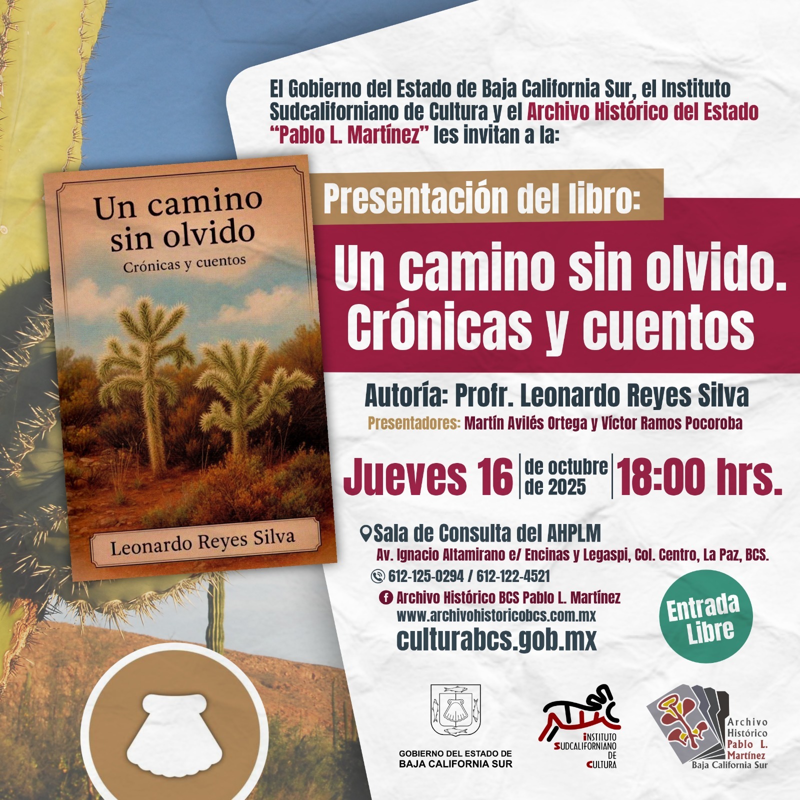 El Gobierno del Estado de Baja California Sur, el Instituto Sudcaliforniano de Cultura y el Archivo Histórico del Estado de Baja California Sur "Pablo L. Martínez", les invitamos a la: