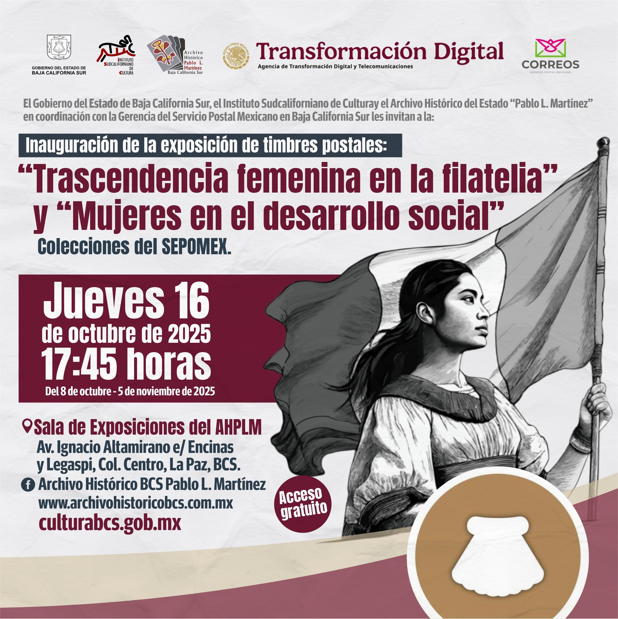 El Gobierno del Estado de Baja California Sur, el Instituto Sudcaliforniano de Cultura y el Archivo Histórico del Estado de Baja California Sur "Pablo L. Martínez", en coordinación con la Gerencia de Servicio Postal Mexicano en Baja California Sur, les invitamos a la: